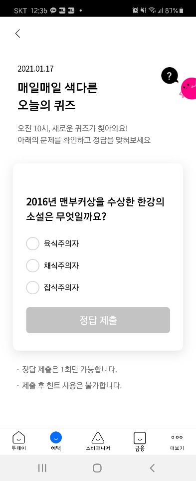 2016년 맨부커상을 수상한 한강의 소설은 무엇일까요?