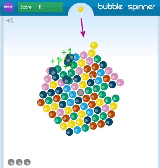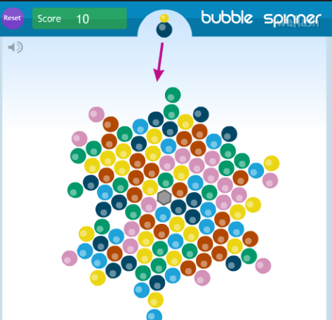 버블 스피너는 화면 중앙에서 회전하는 구조물에 각기 다른 색상의 구슬들이 붙어 있습니다.