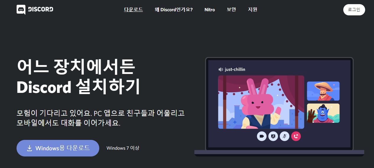제일 첫번째는 디스코드 홈페이지에 접속하여 다운로드를 합니다.