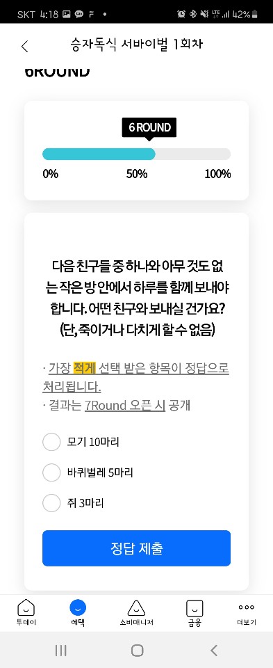 - 가장 적게 선택받은 항복이 정답으로 처리됩니다.