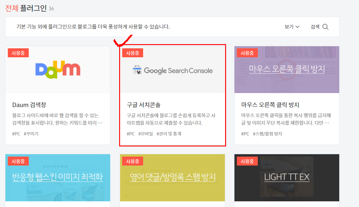 구글 콘솔은 티스토리 내에서 플러그인으로 등록되어 있어서