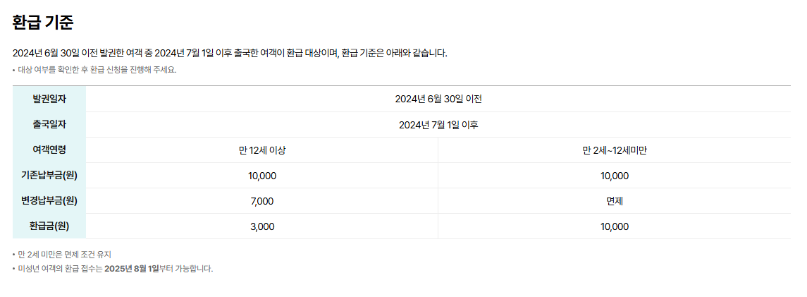 | 성인 | 2024.6.30 이전 발권 & 2024.7.1 이후 출국 | 3,000원 |